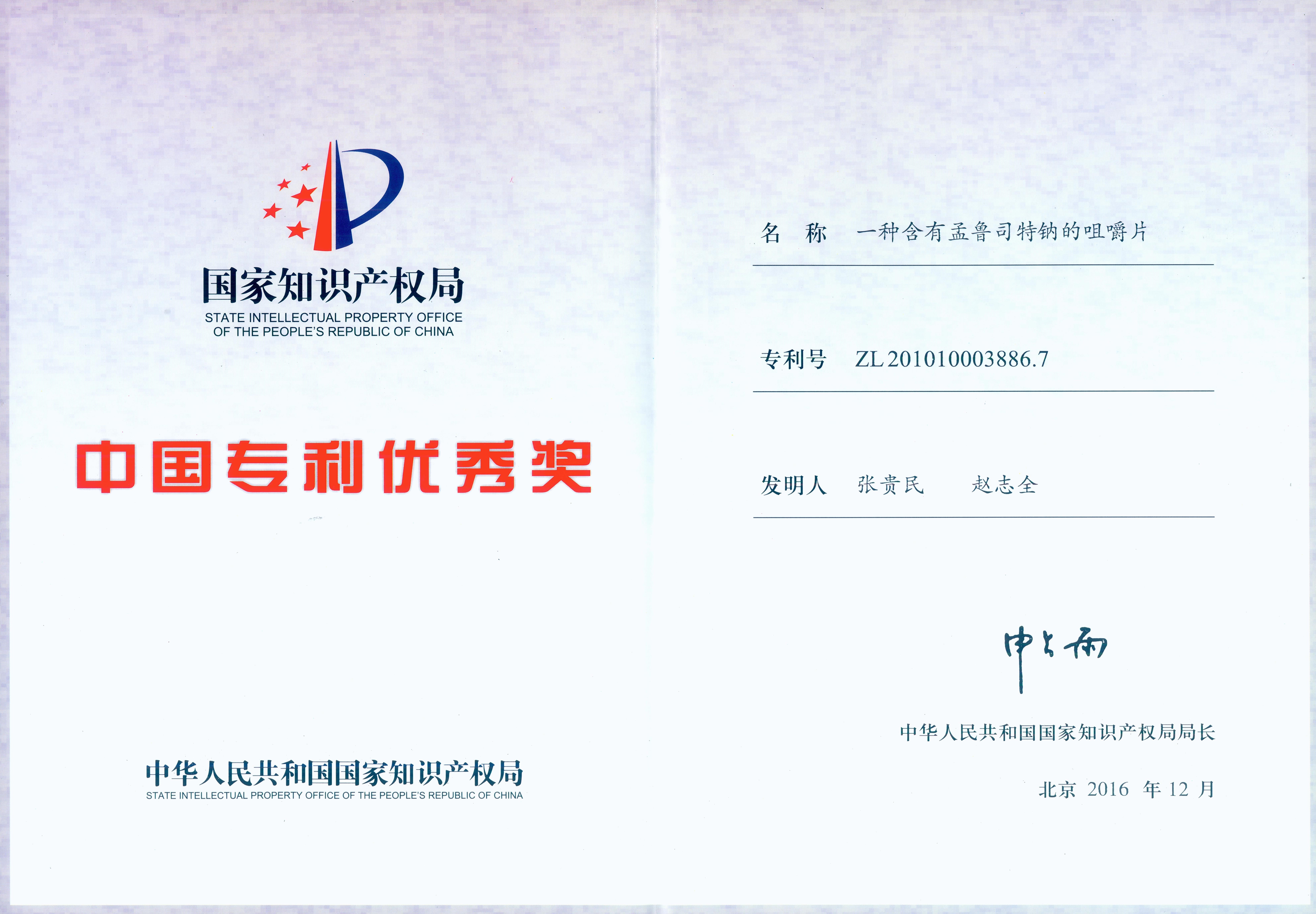 中國專利金獎 國家科技支撐計劃項目 健康中國2030品牌計劃第十屆健康中國總評榜年度品牌 中國化學制藥行業OTC優秀產品品牌 非處方藥產品綜合排名(化學藥)生活方式類第一名 健康金鹿獎2018年度最佳成長獎 山東省科學技術進步獎一等獎
